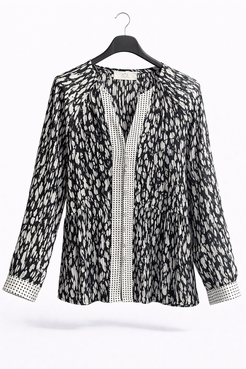 Blouse imprimée chic – Noir & Beige